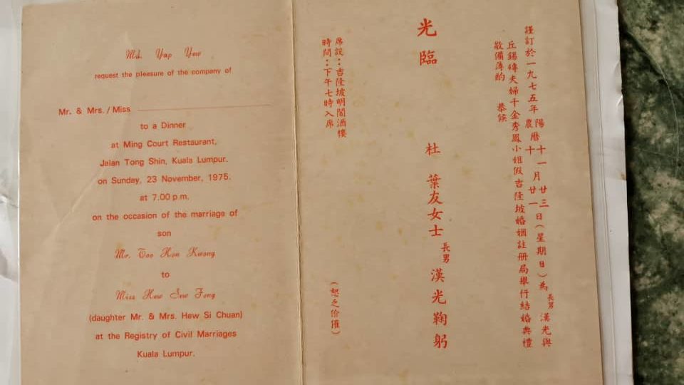她回忆,那个年代的人印请柬一般上都是100张左右,但也有试过接到一些大富人家摆千人宴,印1000张请柬。近年来年轻人都流行用社交通讯WhatsApp邀请亲友,只是因为老人家需要给亲友派帖,所以请柬数目也减少。