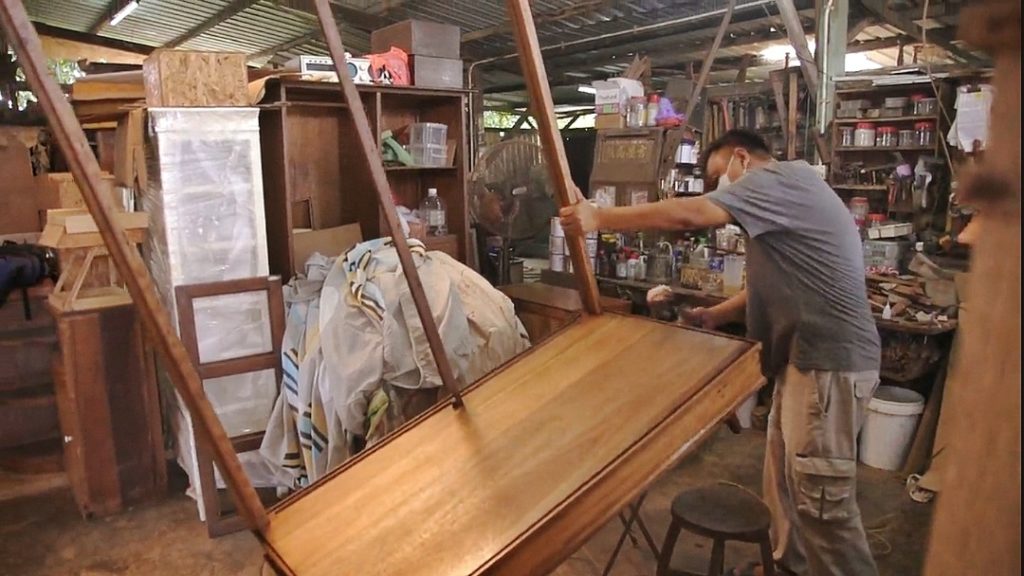 2019年的时候,他接到黄明志亲人的联系,帮忙维修家中祖先留下来的家具,当中包括菜橱、木沙发椅、饭桌、面包橱等等,希望能把这些阿公留下来的东西保存下去,也让下一代有机会看到祖先以前用的东西是怎样的。