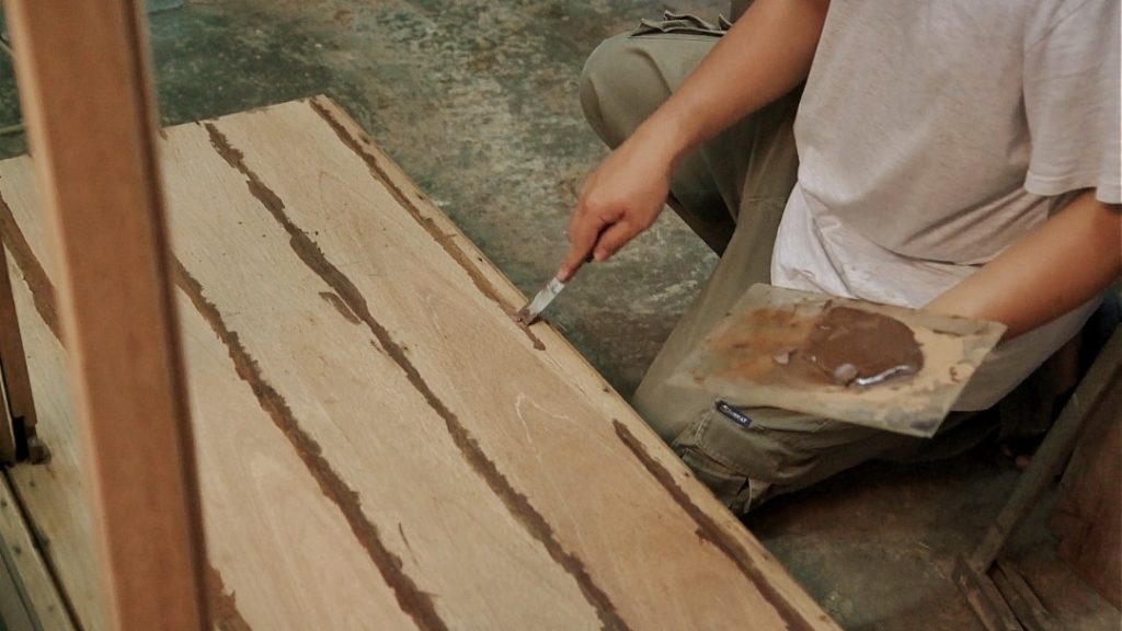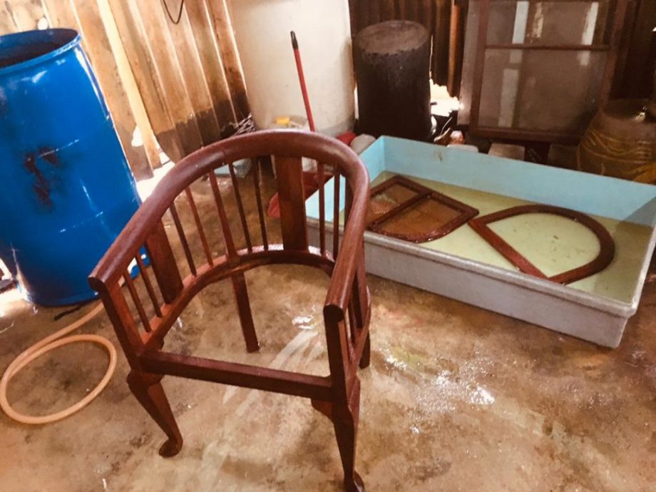 接着把家具拿去风干,并且避免在太阳底下曝晒,因为太猛烈的阳光会让木材裂开。风干以后,就可以依据家具的受损问题来一一修复。
