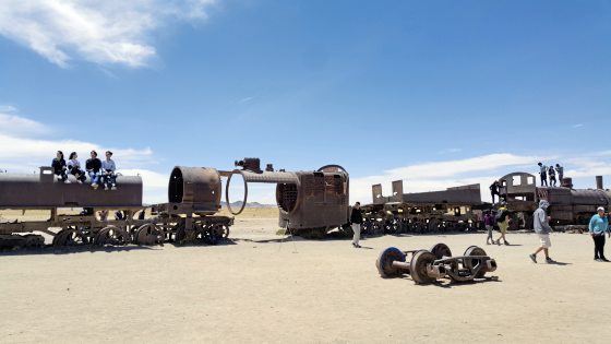 印象最深刻的是火车坟场,其实埋葬的是玻利维亚的眼泪,废弃的火车堆诉说着玻利维亚悲惨的过去。曾经玻利维亚是有海岸线的国家,第一条铁路就是连接乌尤尼到港口,负责运载矿物输出国,一度支撑着玻利维亚的经济。后来与智利的战争输掉了海岸线,从此玻利维亚变成了内陆国家,也变成了南美洲最穷的国家。