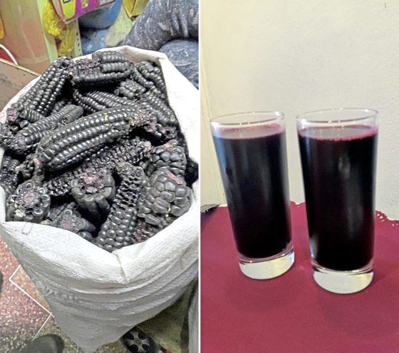 这里的玉蜀黍外型和颜色和我们的大同小异,但它的玉蜀黍粒非常大颗。在餐厅吃饭,送来的餐前小吃就是炸玉米粒,咸香脆,非常好吃。秘鲁还盛产黑玉蜀黍,用来熬煮成水,加入桂皮、八角、蜜糖,做成饮料喝。如果你不喜欢香料味道,可以选择加入黄梨的黑玉蜀黍水。来到秘鲁,记得叫一杯冰冷的chicha morada来喝,它具有医疗效果,秘鲁人说喝了对降低血压和胆固醇有帮助。