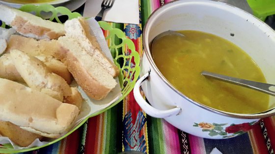 秘鲁和玻利维亚人吃面包吃得很“凶”,从巴刹到街边,再到面包店,甚至楼梯口,都可以看到整箩整箩的面包在摆卖。这种外脆内软的面包,稍微烘过后,切开来塞入材料,或搽些果酱、牛油,都非常好吃。也有用蔬菜和马铃薯熬煮汤,然后沾面包吃。