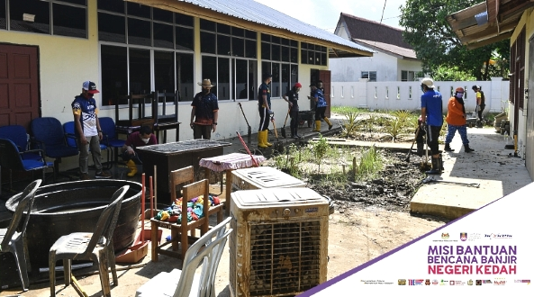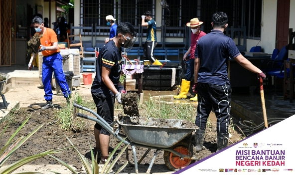 SUNGAI PETANI Aug 31 (Sin Chew Daily) — More than 100 Malays clean up a Chinese primary school in Yan covered with mud after a mudslide and flash flood in Gunung Jerai area on August 18.