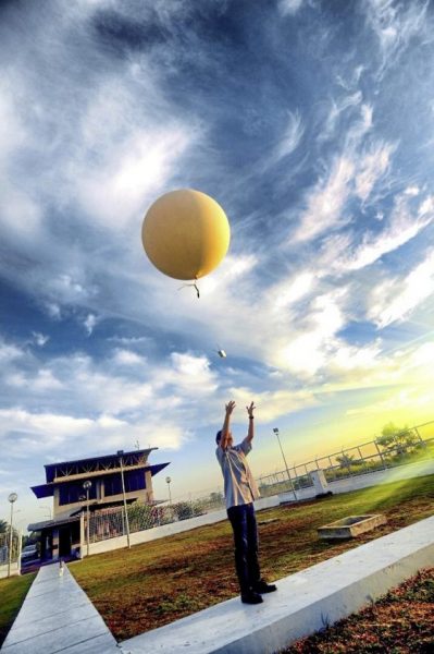 到底气象局是如何观测天气呢?他说,这里头涉及很多科技和设备,例如气象雷达,是用来探测大气中的降水分布及强度;还有外观很像配电箱的百叶箱(又称史蒂文生式百叶箱,Stevenson Screen),是用来收纳气象测量仪器的设备;以及长得很像气球但又不是一般气球的探空气球,会携带探测仪器升空并回传大气参数,气象局人员每天会放飞两次这样的气球。