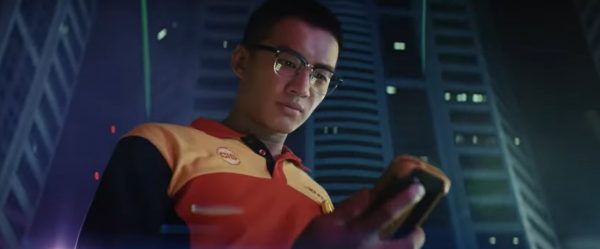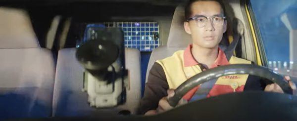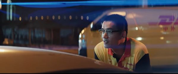 宣传短片中的背景为上海,穿上DHL快递服的阿哲,在酒店外等候准备把写上占士邦名字的一个包裹递交给他,未料开着最新战车Aston Martin DB5刚抵步的占士邦,遇上追踪而来的敌人,双方随即展开一场追逐战,而阿哲接获递交包裹新地点的讯息后,便开着快递车前往新地点,并全程目击占士邦与敌人的街头追逐战,过程险象环生,有档口桌椅被撞飞、街道鹰架被撞倒塌、车子从高架天桥飞落等,惊险程度不输007正片。