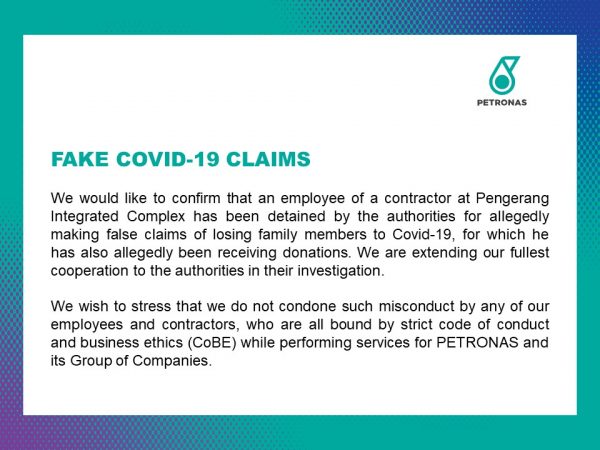 另一方面,国油公司今日凌晨也在官方脸书专页发布文告指出,边佳兰综合石化中心一名承包商的员工已遭执法人员扣押,该公司表明愿意配合调查。