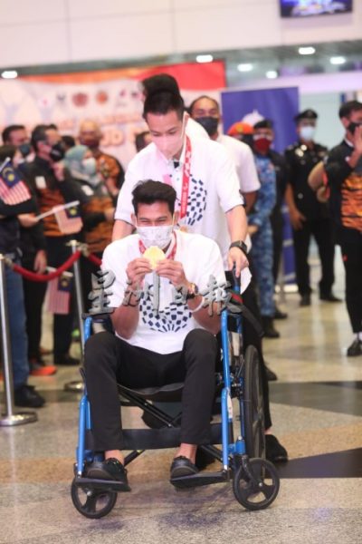 阿都拉迪夫今日抵步吉隆坡国际机场(KLIA)后,向接机的一众官员和媒体展示金牌,并在受访时感谢大马国民、其他运动员、教练、家人、朋友以及赞助商的支持与协助。