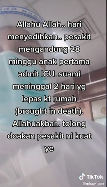 吉兰丹哥打峇鲁苏丹后再纳二世中央医院(Hospital Raja Perempuan Zainab II)加护病房的护士艾因,在TikTok上揭露该哀痛实例。