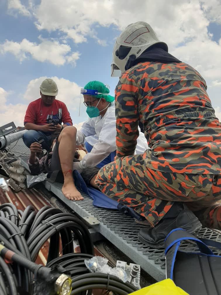 雪州消防及拯救局主任诺阿占指出,巫裔伤者(25岁)在屋顶上进行维修工作时,遭倒下的天线压中,导致脚部受伤,无法从屋顶下来。