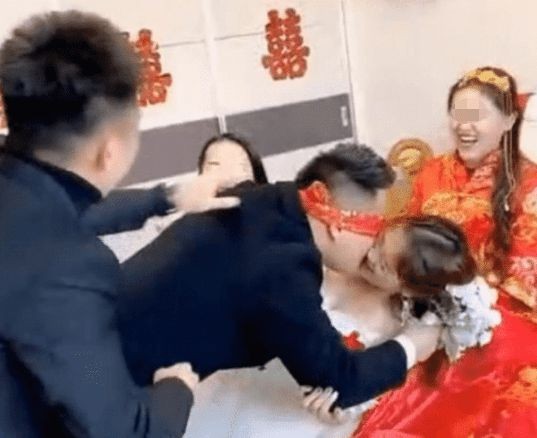 (中国·北京10日讯)中国低俗婚闹经常为人诟病,近日又疯传一段新郎蒙眼捉住伴娘强吻的影片,新娘目睹全程却仍未制止,反而笑得合不拢嘴!