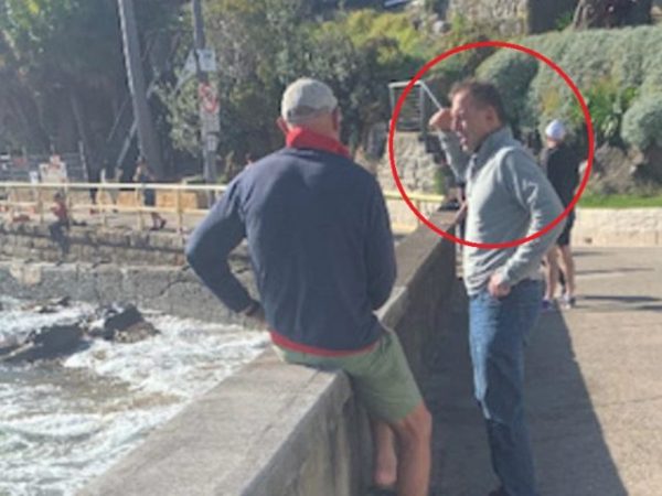 澳洲前总理阿博特(右)日前没戴口罩现身悉尼的费利饱尔海滩岸边,疑似与另一名男子聊天,结果被一名匿名女子拍下照片举发。悉尼《每日电讯报》网站上周六报道,警方因为阿博特违反当地防疫法规,已开出一张澳币500元(约1523令吉)罚单。