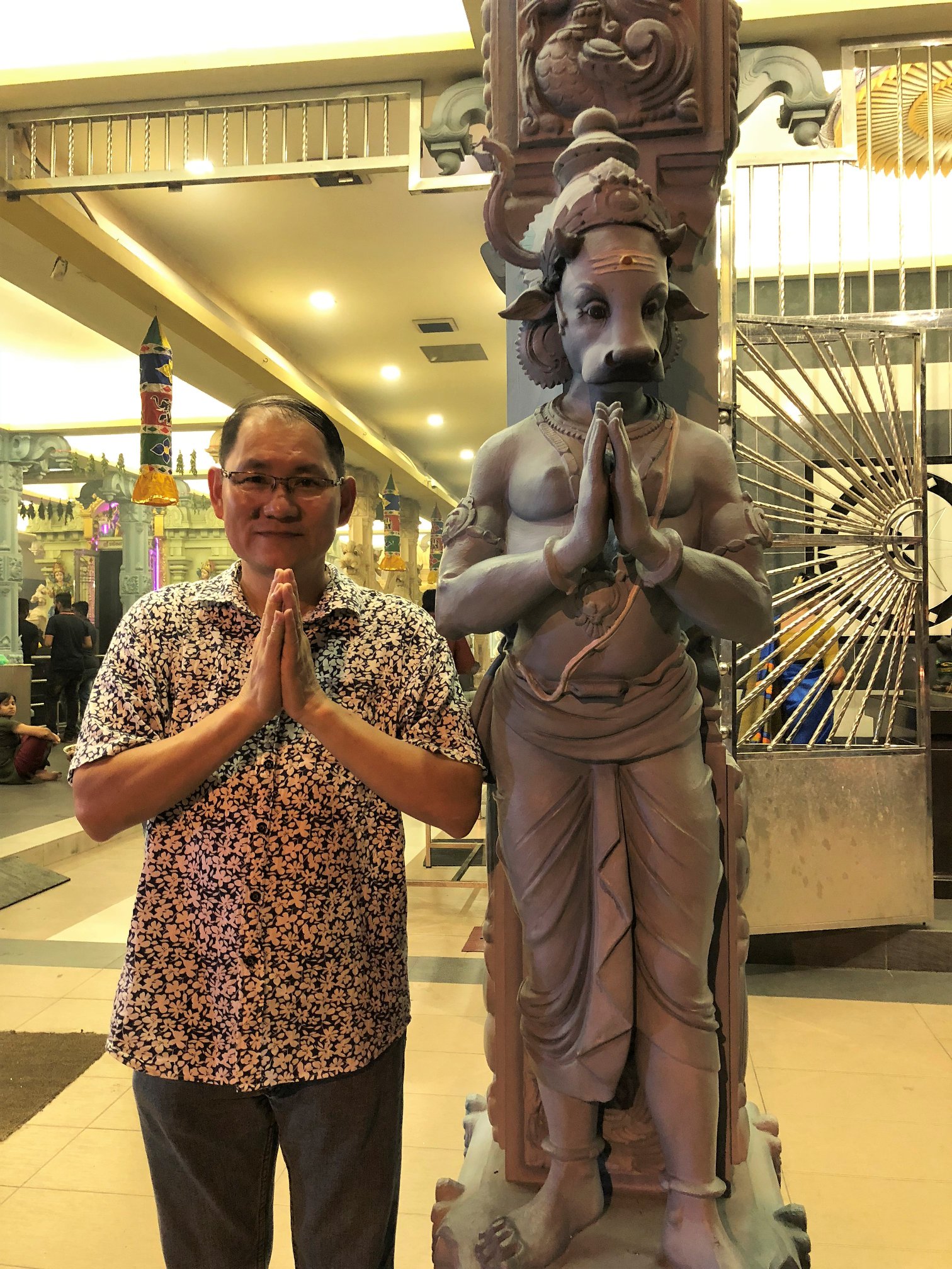 2012年,陈亚才决定下工夫研究印度庙,报读十五碑印度教进修课程,2014年开始带友人参观印度庙,对印度庙上的“满天神佛”侃侃而谈,直到今日仍做着印度庙导览的工作。