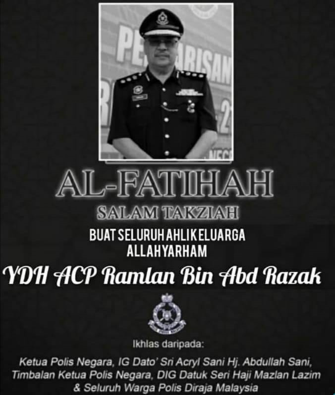 噩耗传出,全国总警长拿督斯里艾克里沙尼也率领警队发布讣告,向家属致哀。