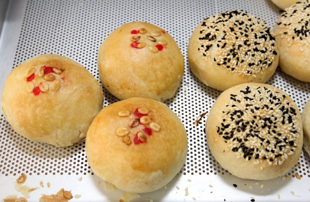至于撒上芝麻的白色腊饼,他说,潮州话“la”即为猪油(动物脂肪)意思,所以腊饼指的是猪油饼,饼皮呈软不脆,和广东饼不同。