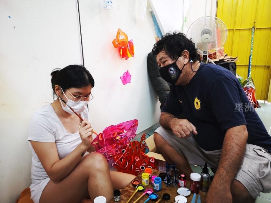 “尤其当我看到顾客一家大小来买灯笼,做父母的笑着对孩子说:看,这是我小时候玩过的灯笼,一家大小开心笑起来时,心里觉得很欣慰,让我更坚持做下去,也开始想到要传承这个华人传统文化。”