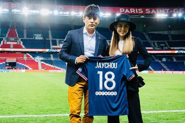 此外,周董带老婆昆凌到法国巴黎“王子公园”观看世界足球先生梅西转队后首次为巴黎圣日尔曼队在主场出赛,现场除了在赛前热身时,播放了周董的歌曲《Mojito》外,球队也特別准备了周董的球衣,背号是18号,周董与昆凌很兴奋在场内拿着球衣合照。