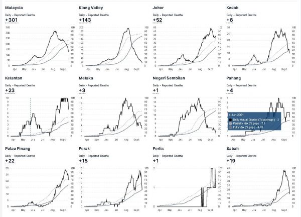 根据卫生部COVIDNOW网站的数据,截至20日晚上11时59分,雪兰莪以新增130宗死亡病例排最高,接着是柔佛(52宗)和吉兰丹(23宗)。