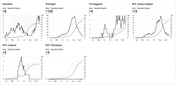 新增死亡病例达个位数的则包括砂拉越(8宗)、吉打(6宗)、登嘉楼与彭亨(4宗)、马六甲(3宗),森美兰及玻璃市(各1宗)。