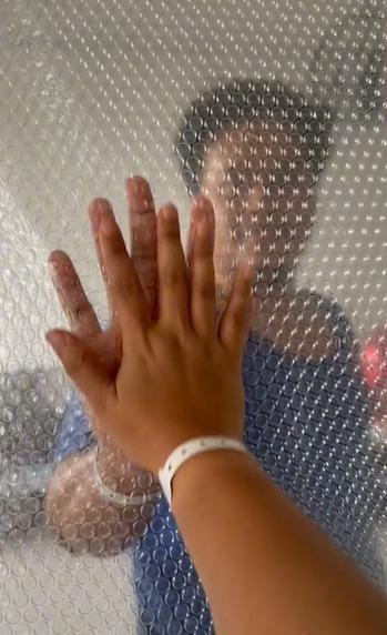 (新山21日讯)确诊女子原以为没办法欢庆结婚纪念日和庆生,没想到丈夫隔住泡泡纸送上惊喜,令她相当感动难忘。