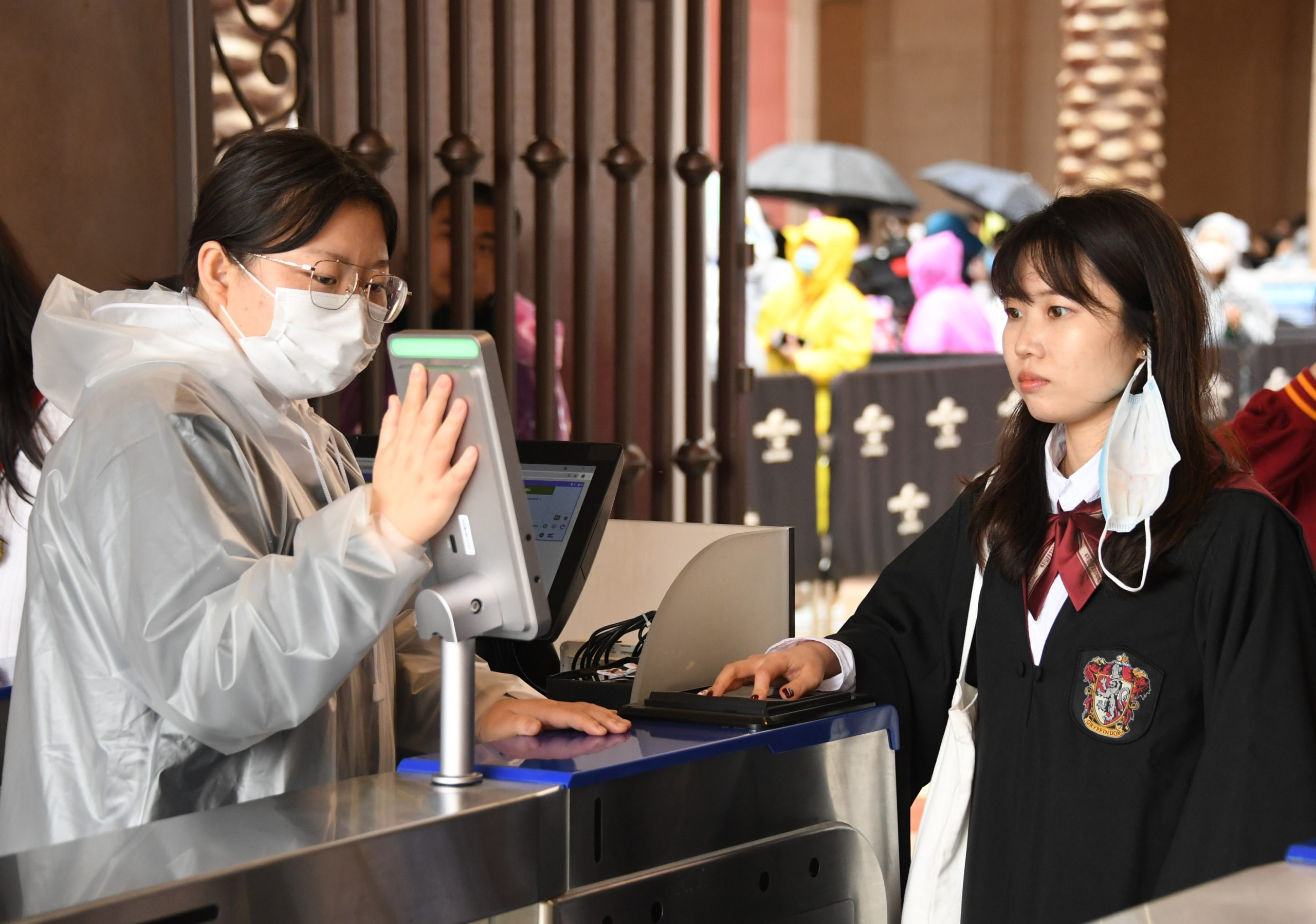 开园仪式后,伴随着游客的欢呼声,北京环球影城公园11时10分迎来首批游客。不少游客身穿“巫师袍”,直接奔向哈利·波特的魔法世界主题景区。