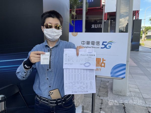 (台湾24日讯)苹果iPhone 13系列新机今天在台湾开卖,今年虽有疫情,但不减民众热情,仍至中华电信、远传信义门市排队购买新机,中华电信、远传头香客户均表示将购入天峰蓝。