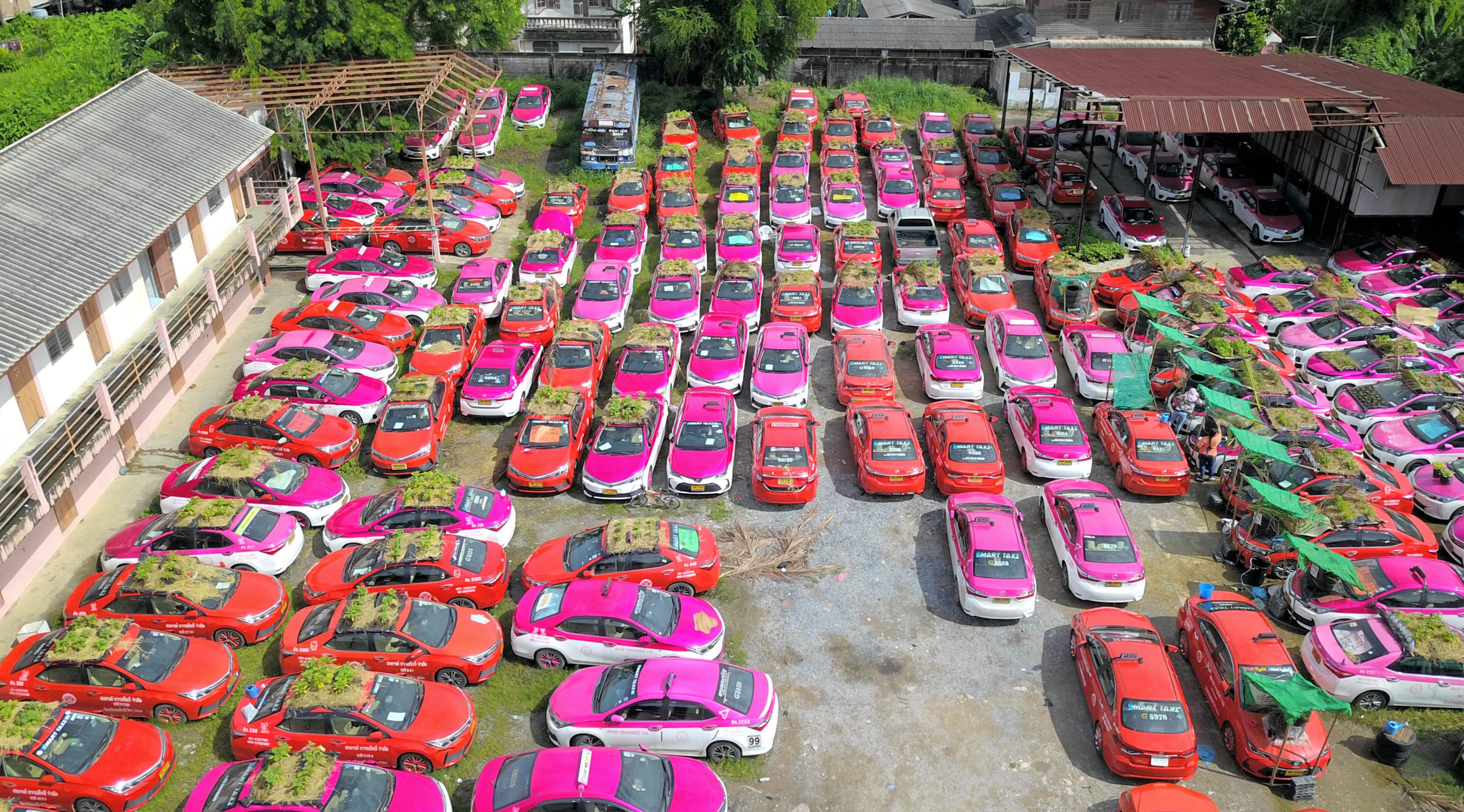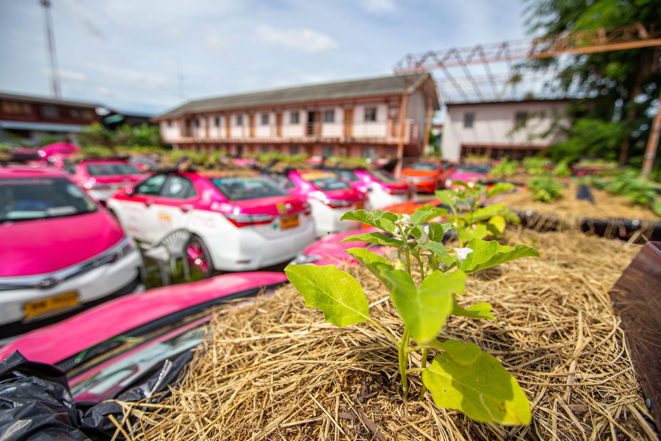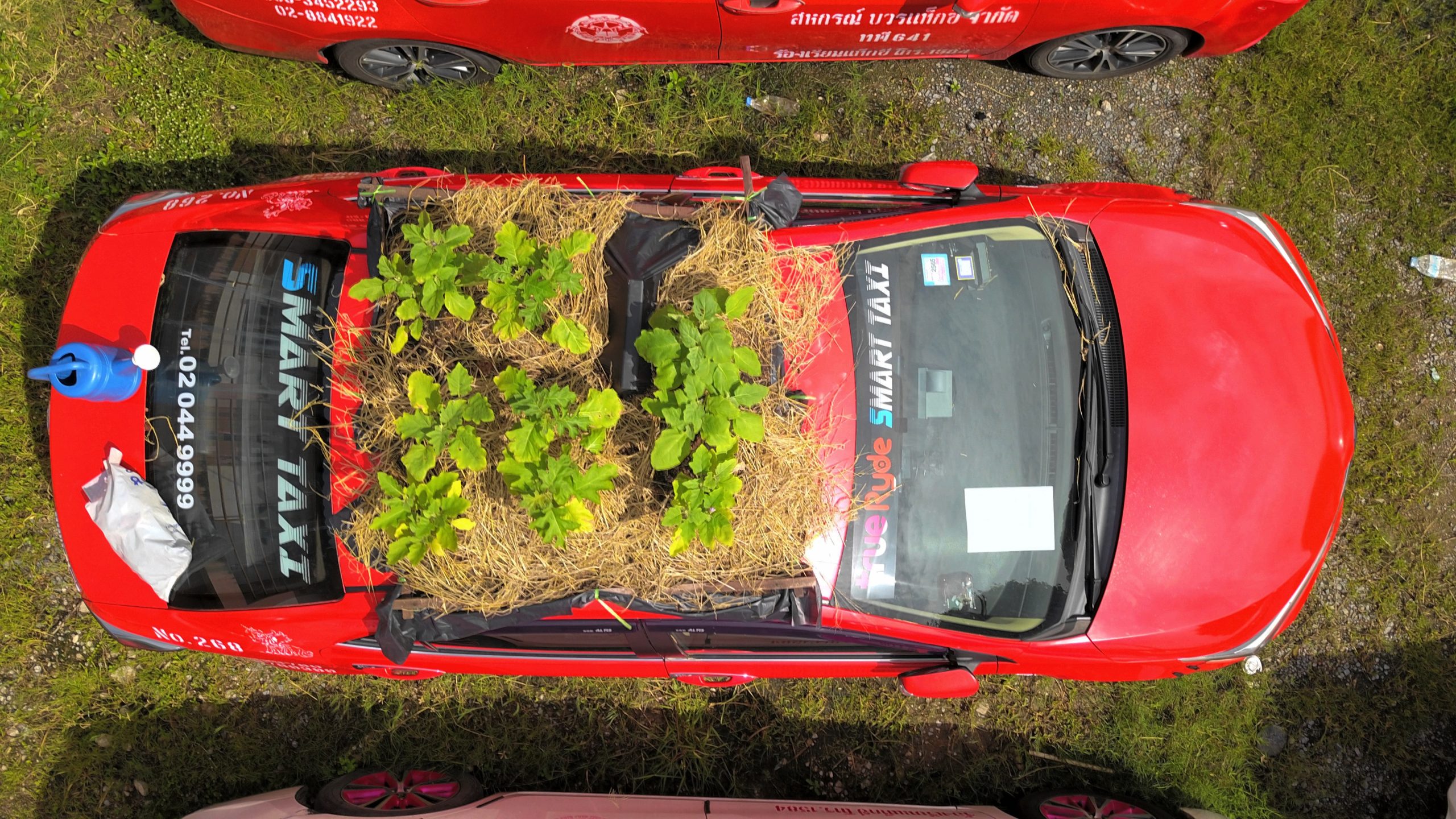 曼谷疫情大爆发、实施封城后,上千辆德士因冠状疫情停止营业超过一年,大多数车辆已经损坏无法修复,这些废置或闲置的车辆因此被利用来种菜。他们在德士车顶开辟出一小块菜地,用黑色塑料垃圾袋和竹架在闲置的德士顶搭建了一个个微型“菜园”,种上了西红柿、黄瓜和四季豆,茄子、辣椒、黄瓜、小胡瓜和罗勒叶等。