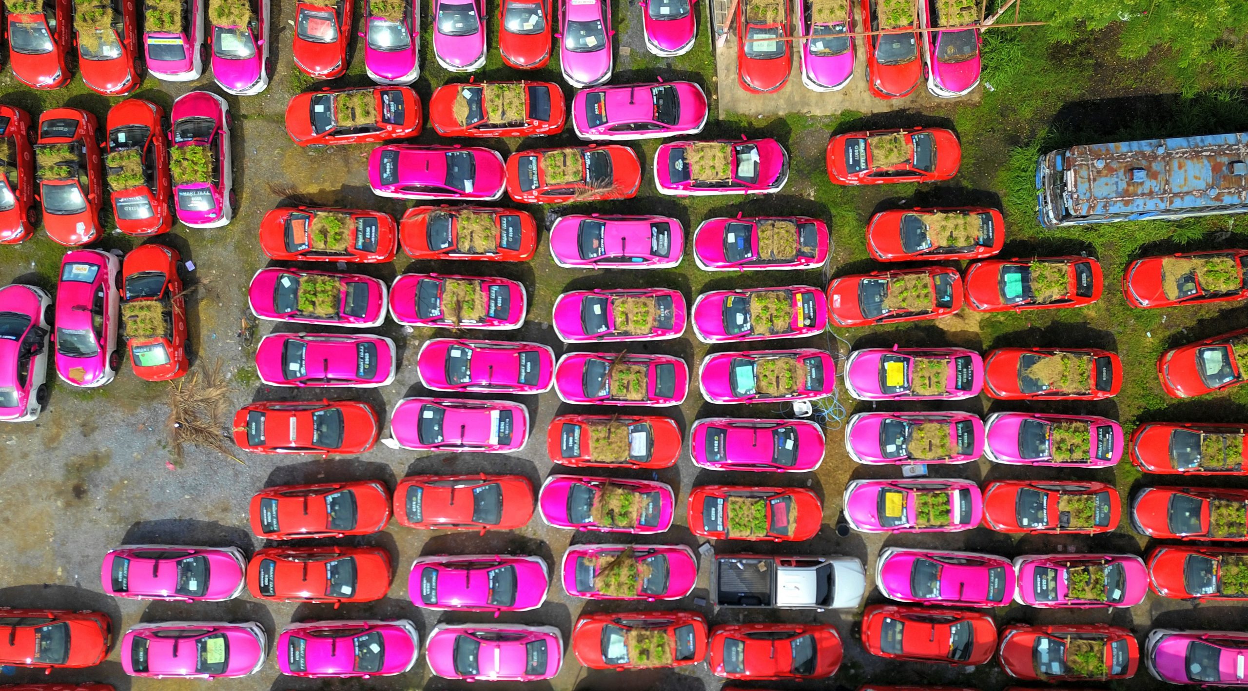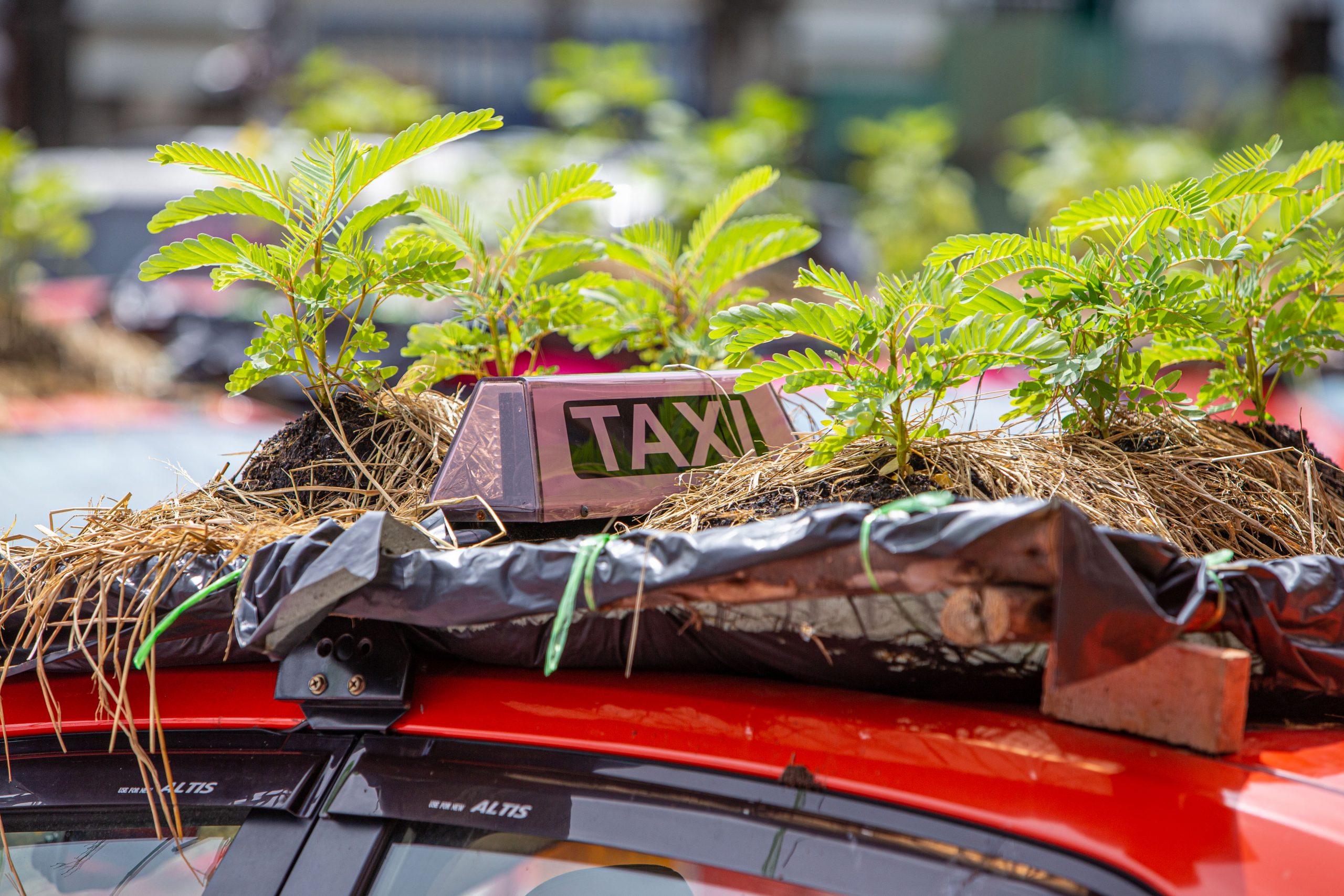 这些由曼谷德士公司的司机们在车顶打造的“社区菜园”,看起来像是一个个引人注目的艺术品,但它的意义是,引起人们关注受到冠状病毒封锁措施严重打击的德士司机和相关行业的困境。