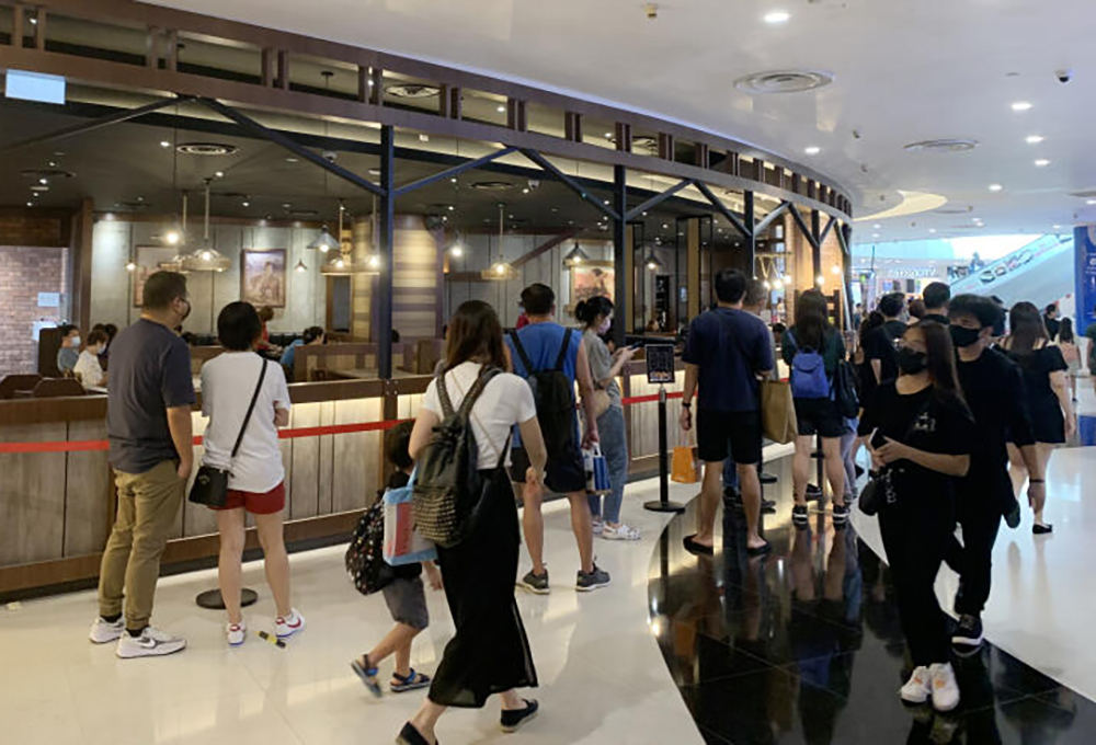 堂食措施收紧前最后周末 狮城商场现百人人龙