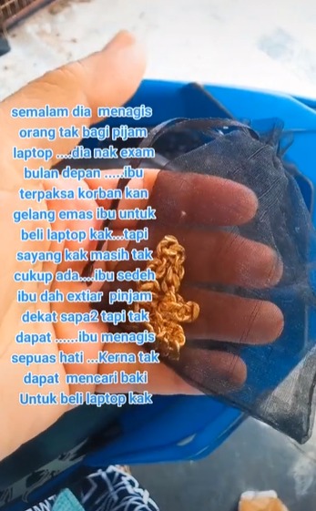 “没办法之下,我唯有变卖金链来帮她买电脑,但还是凑不足钱。”