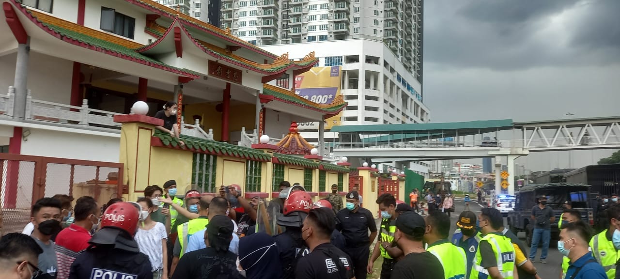 Rusuhan di Hadapan Tokong, Anggota Polis Diserang.#malaysiagazette pic.twitter.com/FPtK2EFeuo