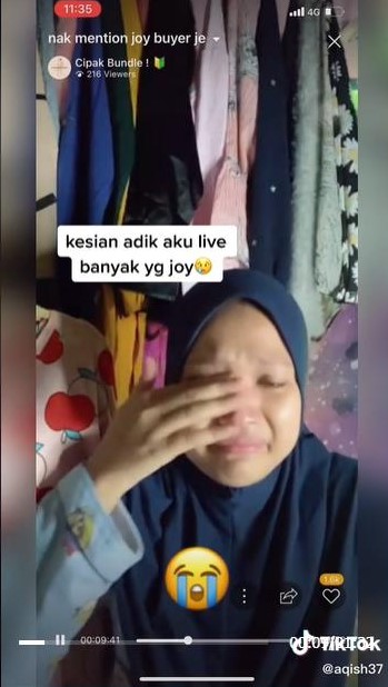 (八打灵再也30日讯)在网络上经商有可能会遇到不负责任或不诚实的顾客,一名女卖家在直播卖衣服时,因同时被好几个人爽单,让她当下忍不住在镜头前哭泣。