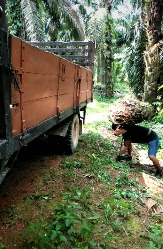 他说,平时都是他一人驾罗里进入油棕园,并一人将油棕果实搬上罗里,而他一般会搬大约100至200捆果实,共重达约5吨。