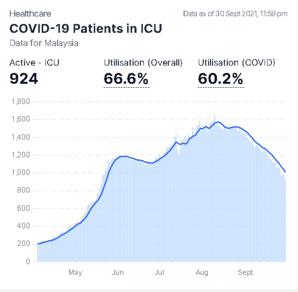 其他州属和直辖区的ICU使用率皆在80%以下,依序为吉兰丹(76.4%)、霹雳(76.3%)、雪兰莪(74.7%)、柔佛(70%)和砂拉越(67.8%)。