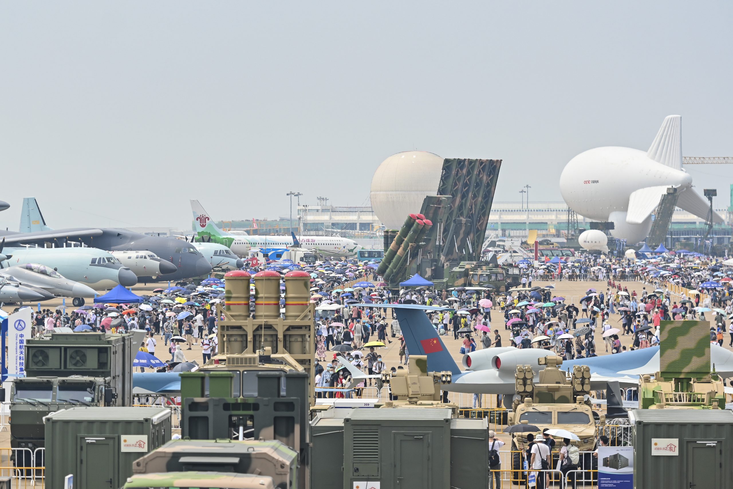今届规模进一步扩大,共有中国、美国、俄罗斯线上线下近40个国家和地区的700家企业参展,“陆、海、空、天、电”全领域覆盖,“高精尖”展品荟萃一堂,包括“20时代”战机家族,HQ-9BE远程防空导弹武器系统,可远程隐蔽打击大中型水面舰艇及编队的YJ-18E潜射导弹武器系统……一大批新成果“全球首发、中国首展”。