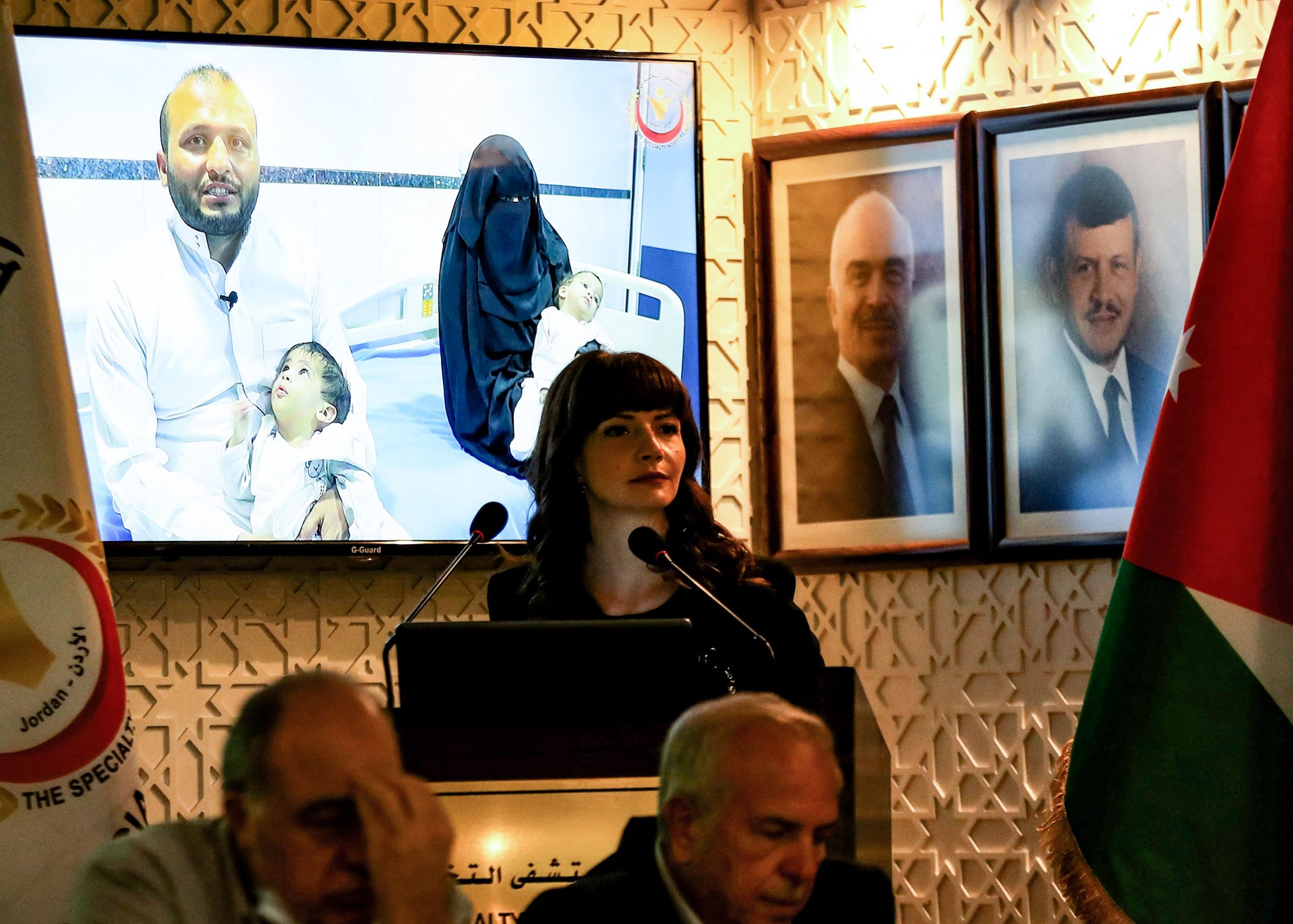 法瓦兹披露,“当他们到达时,体重为3.7公斤。我们等到他们重达9公斤时才把它们分开。” 他补充,这对婴儿目前仍在约旦与父母在一起,预计两到三周后就会回家。 (法新社照片)