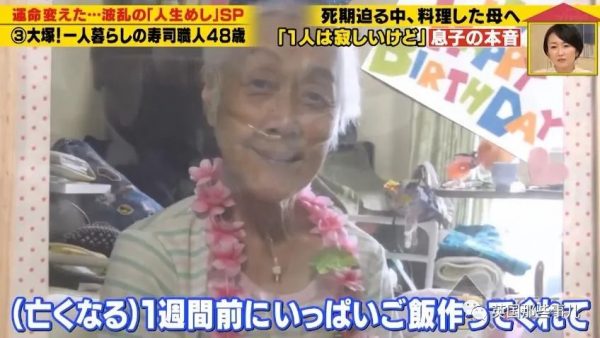 日本东京电视台综艺节目《跟拍到你家》近日采访到一名48岁男子舘阪胜也,他的父亲早在17年前就已离世,母亲则因罹患肺癌,于半年前病逝。