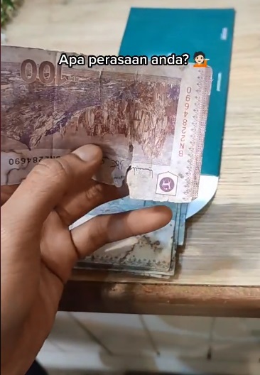 (八打灵再也6日讯)辛苦工作两周,好不容易收到500令吉的工资,回家打开工资的青包封数钞票时,却发现钞票都已破损,令男子生气又难过。