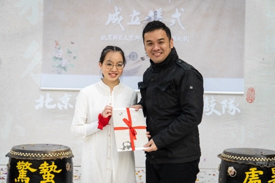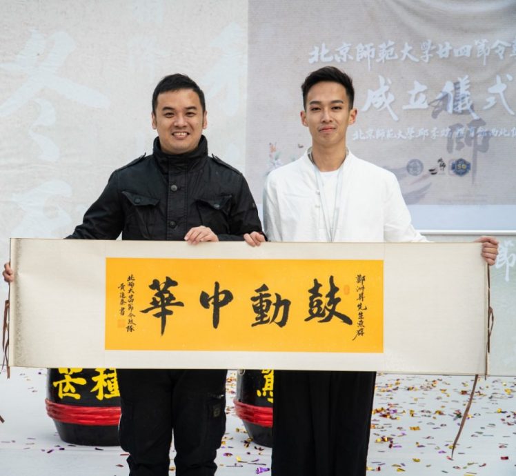 2019年冬至,北京师范大学二十四节令鼓队正式成立,当天校园内有一场隆重的仪式,还邀请到二十四节令鼓创办人之一的陈再藩到场观礼。