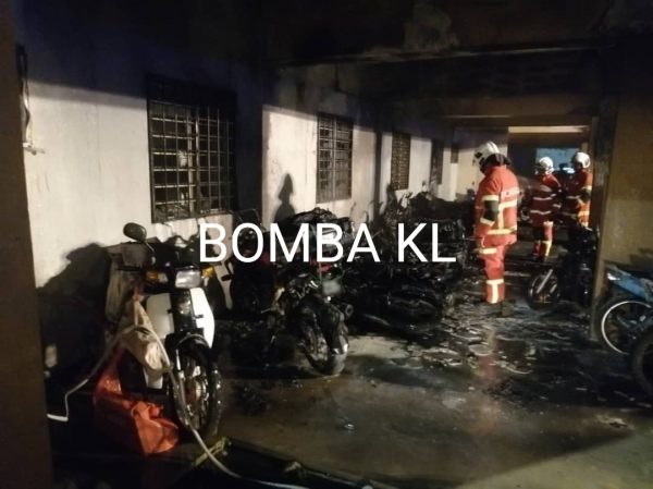 (吉隆坡10日讯)人民组屋底层停放摩哆车的地方起火,烧毁17辆摩哆车,所幸没有任何伤亡事件。