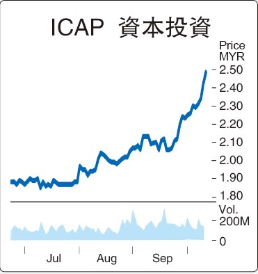 数据显示,在迈入10月后,资本投资股价服扶摇直上,从9月杪的2令吉25仙涨至今日闭市的2令吉49仙,涨幅达到10.67%,而今年迄今股价上涨16.9%,表现超越基准富时综指。