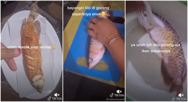 米娅将自己下厨烹调的全过程上传到TikTok,只见她捞起奄奄一息的龙鱼,仔细为其去除鳞片,腌制片刻后下锅油炸,完成一道“炸鱼佳肴”。