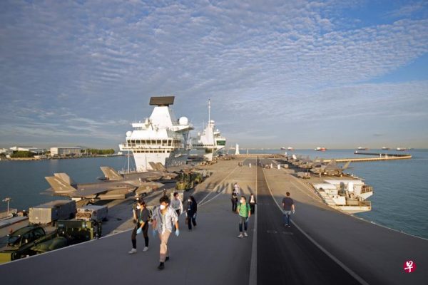 (新加坡12日讯)英国伊丽莎白女王号(HMS Queen Elizabeth)航空母舰打击群昨日停靠新加坡,航母群指挥官表示,航母群有意与新加坡海军继续深化合作。