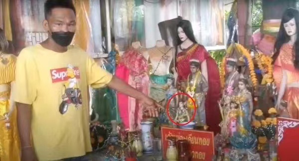 到了神坛后,塔诺普指着一尊女鬼的雕像说,当天晚上见到的就是她。夫妻俩急忙跪拜道歉,塔诺普之后才慢慢恢復正常。