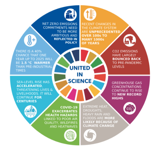 世界气象组织协调编写的《2021团结在科学之中》是该系列报告的第三份,由联合国环境规划署(UNEP)、世界卫生组织(WHO)、政府间气候变化专门委员会(IPCC)、全球碳计划(GCP)、世界气候研究计划(WCRP)和英国气象局(UK)提供素材。