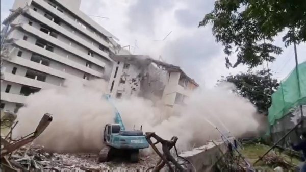 这起意外发生于下午3时左右,当地警方获悉邻近博仁大学(Dhurakij Pundit University)一座6层高的大楼拆迁时意外倒塌,当时驾驶挖土机施工的工人琛纳被困在废墟里,当局便联系报德堂志工前往现场救援。