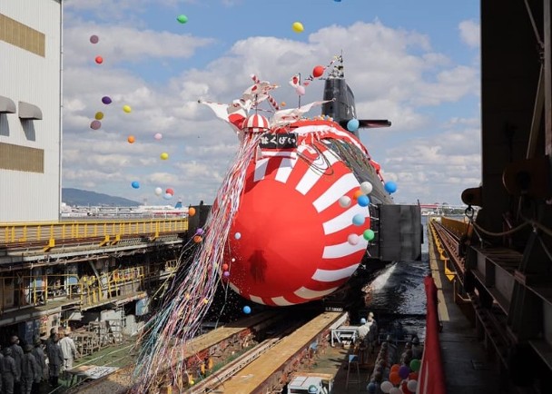 日本海上自卫队最先进的第2艘大鲸级潜舰,周四在神户市的川崎重工业工厂举行下水仪式,命名为“白鲸”号,预计2023年3月交付服役。