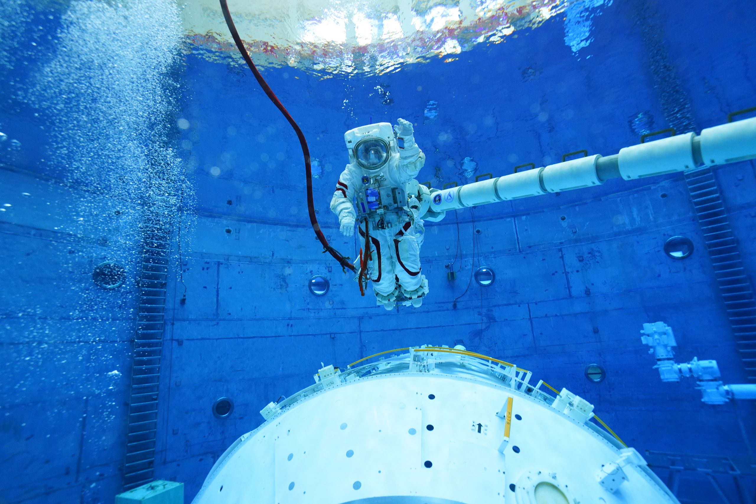 王亚平还说,针对太空站任务的每项训练,都十分具有挑战性。“以模拟失重水槽训练为例,我们每次水下训练都会持续4到6个小时,体能消耗巨大。曾经我们有过一个很形象的比喻,每次水下训练的体能消耗相当于跑一次『全马』。”在水下训练时,太空人所穿服装会有四十千帕的余压,这就需要太空人先用一部分力去和服装对抗,然后再做动作,所以这是一个很大的力量消耗。“记得我刚来太空人大队时,听师兄们讲,每次水下训练完成后,手会抖得连筷子都拿不稳。”