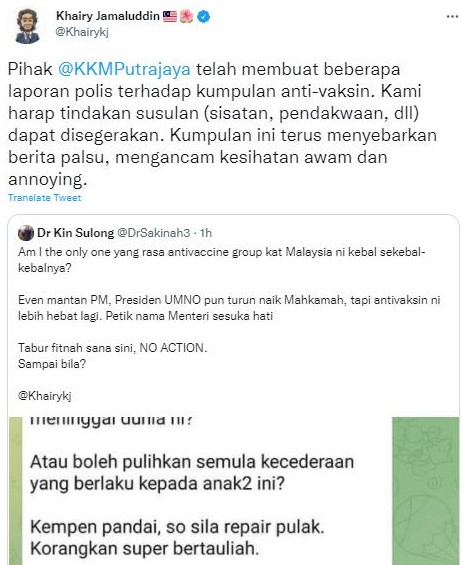 Pihak @KKMPutrajaya telah membuat beberapa laporan polis terhadap kumpulan anti-vaksin. Kami harap tindakan susulan (sisatan, pendakwaan, dll) dapat disegerakan. Kumpulan ini terus menyebarkan berita palsu, mengancam kesihatan awam dan annoying. https://t.co/rdAKlUNEFZ