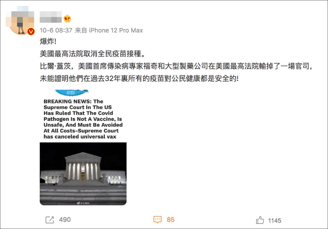 (八打灵再也18日讯)美国最高法院裁决取消疫苗全民接种?假的!这又是反疫苗分子编造的谎言。