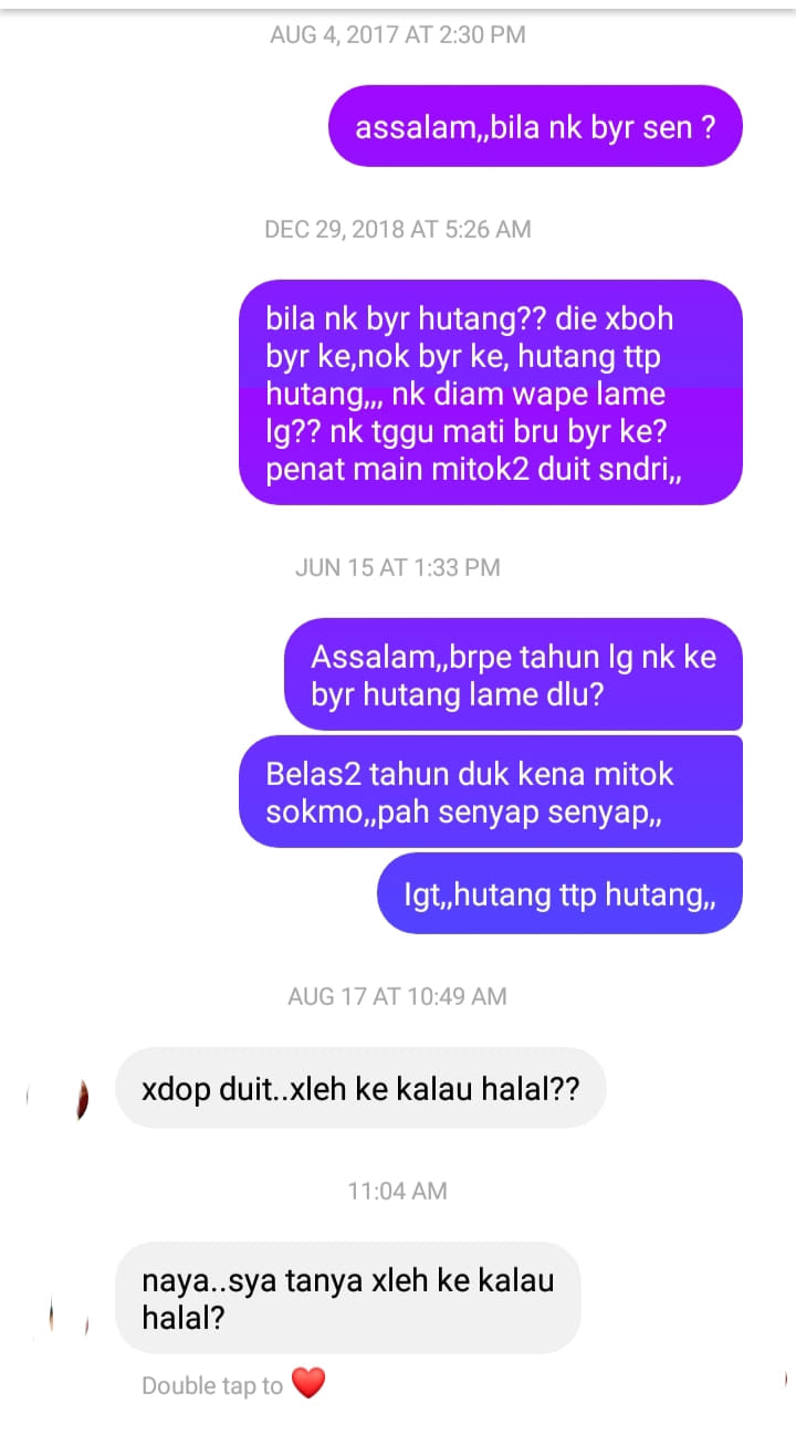 (八打灵再也18日讯)2017年的讨债短讯,2021年才敢看,却还是不还钱!